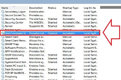 2、然后,我们可以在使用命令调出系统服务配置窗口后,在右侧列表中找到Shell Hardware Detection选项;