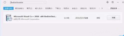 2、然后,再选择“Visual c++ 2010 x86 redistributable”,进入到的页面,再点击右侧的“卸载”,再进入到卸载的过程中,在此期间静静等候即可;