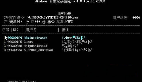 7、在选中要清除的帐户回车,选对清除密码,按Y键就开如清除操作,在完成后,将U盘拔掉,最后再重启计算机即可。