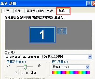 2、在打开的“显示属性”面板中,切换到“设置”标签;