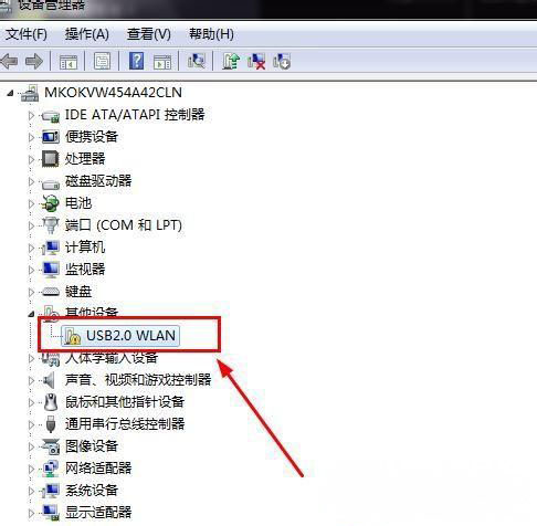 3、再打开属性对话框,找到设备管理器,在打开它,再找到USB网卡设备,因为这个设备没有安装驱动,所以有一个黄色的标志,你找起来很简单。