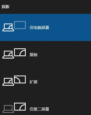 4、此时会弹出投影界面,按需求来选择需要显示的界面即可(如果无法弹出可直接按下Win+P组合键即可弹出)当投影使用完毕后记得在投影选项中,最后再选择电脑屏幕即可。