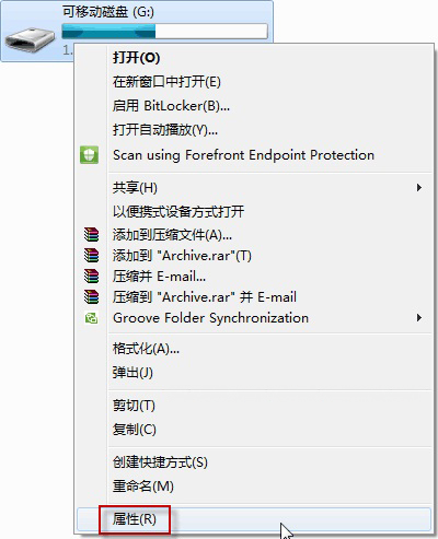 1、首先,在有可移动存储的设备目录下,找到刚才连接的设备,右键鼠标,选择属性;