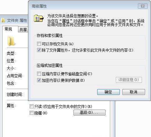 首先,在任何一个NTFS分区的目录或文件下,右击要加密的文件或文件夹,在单击属性,在常规选项卡上,单击高级按钮;在弹出的窗口中,勾选加密内容以便保护数据复选框最后再点击确定即可,在关闭文件时文件即被加密。
