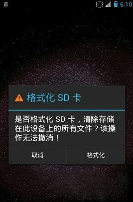 4、手机果然提示SD卡已损坏,点击进行重新格式化;