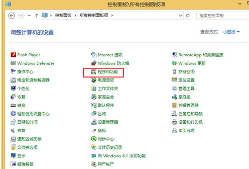1、首先,打开控制面板,在查看方式设置为小图标,点击程序和功能选项;