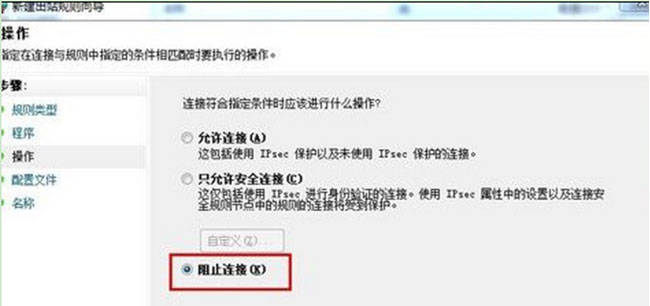3、接下来,在点击程序,在浏览在找到需要禁止的程序,勾选阻止连接,最后再按照提示完成操作即可。