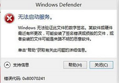 一、根据该错误提示信息,可能是由于Windows Defender服务所对应的应用程序被第三方安全应用篡改。可尝试以下方法解决: