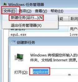 首先,重新点击文件,在选择新任务,在输入explorer,最后在点击确定即可看看回收站是否清空了。