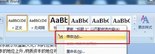2、然后,在不同序列的样式的格式设置,在样式中选定某个序列,比如一级序列即标题1的,在右键点击。会出现一个菜单栏,在选择修改,就会出现一个修改样式框,以此设置好每个级别的格式。