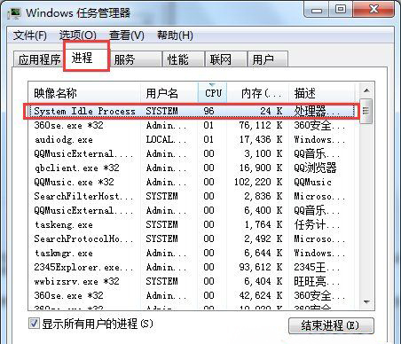 如果在刚开机时发现System Idle Process的CPU占用值很低,请注意后台有哪些大的程序在运行或者感染病毒。