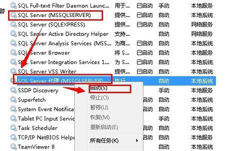 3、在鼠标右键单击SQL Server(MSSQLSERVER)选择启动;